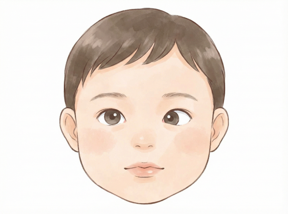 先天内斜視は片側だけ大きく内側にずれているので、見た目にも分かりやすいです。発症時期も大切で、もしも1歳を超えてから眼科を受診される場合には、生後すぐの写真を持参いただくと、時期を確かめることができるかもしれません。両眼視機能の獲得には早めの手術が良いとされており、生後6か月を過ぎても視線が内側によっている場合には眼科へご相談ください。