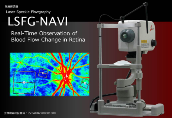 レーザースペックルフローグラフィーは、眼底の血流を非接触で表示し、血流分布を可視化・数値化することが可能な装置です。特に視神経乳頭周囲の血流評価は、緑内障や様々な全身疾患を反映していることが知られております。血流というのは見た目だけでは分かりません。虚血性視神経症など、見た目では分かりづらい視力障害においても簡単に評価が可能であり、加えて血流を数値化できるという大きなメリットは、臨床はもとより、臨床研究においてもこの機器が広く用いられてきました。血流障害を主とする糖尿病網膜症や網膜静脈閉塞症などの眼底疾患においても、病勢の評価目的に検査を行うことがあります。